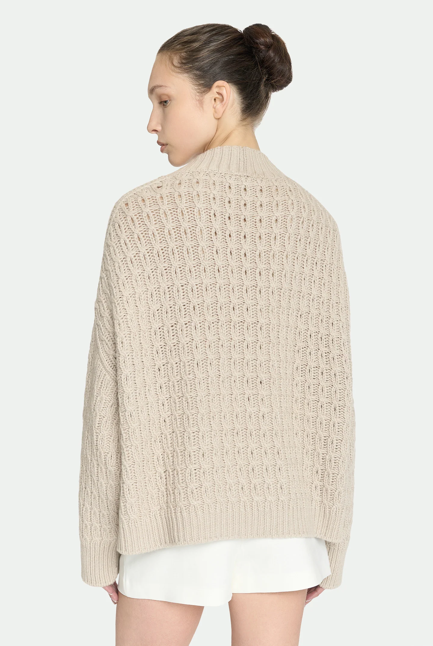 Realizzato in morbido cashmere, questo cardigan si distingue per l’esclusiva lavorazione a treccine in rilievo, che dona al capo una texture sofisticata e materica. La linea essenziale è pensata per valorizzare la ricchezza del filato e la cura artigianale dei dettagli. Un capo versatile, dall’eleganza sussurrata, ideale per ogni momento della giornata.
