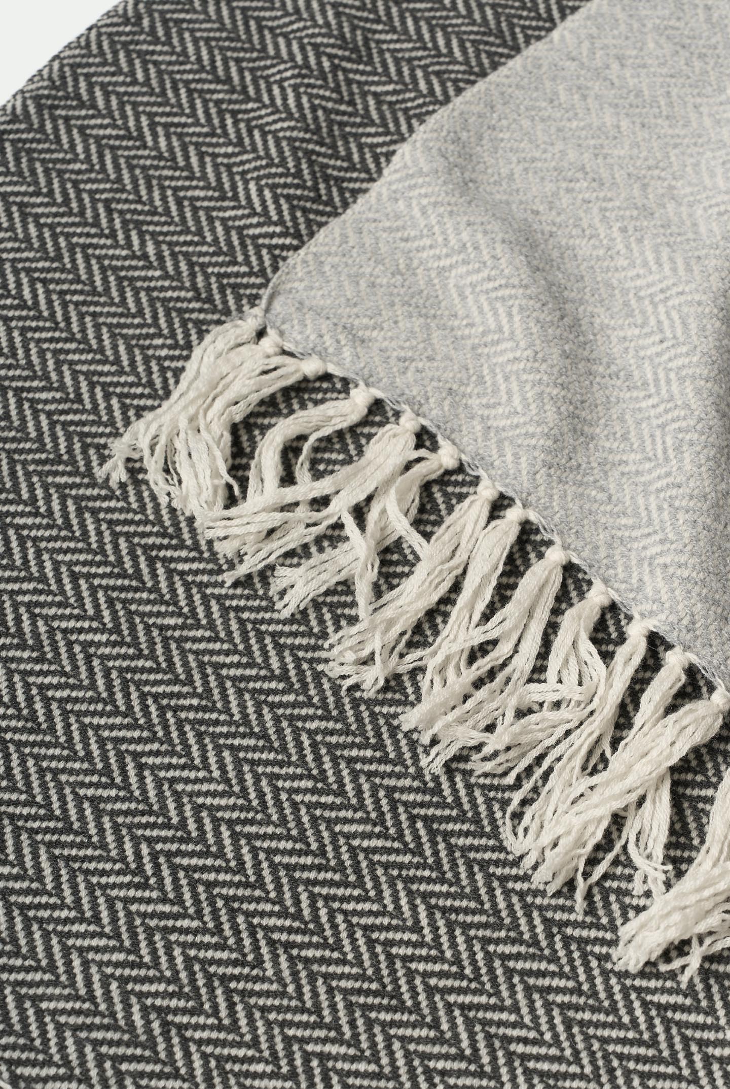 Plaid in 100% luxury cashmere con lavorazione chevron, il caratteristico motivo a V che crea un effetto a zig-zag sofisticato. Morbidezza e raffinatezza in un unico dettaglio.